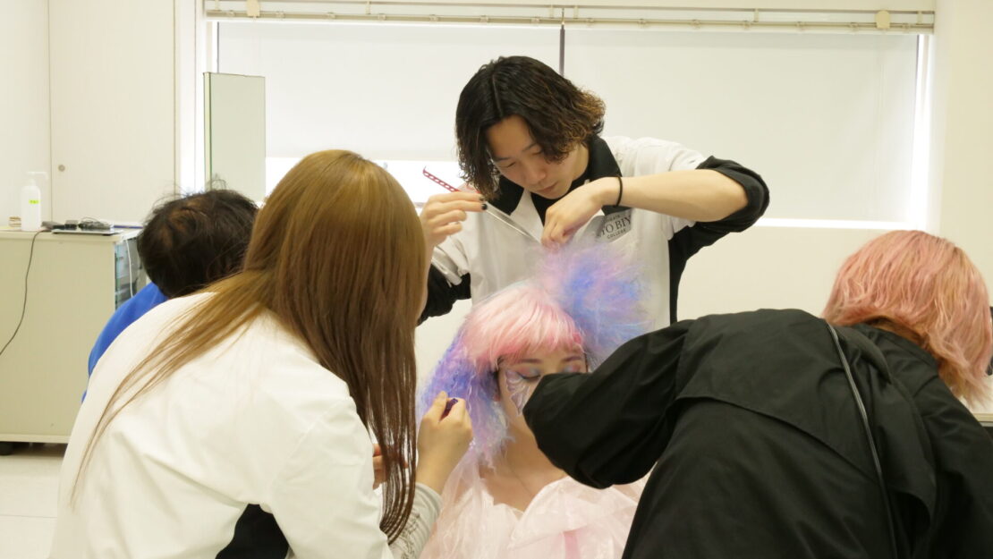 美容科ヘアクリエイターコースでは、基礎技術を徹底して身につけ、現役美容師とヘアメイクアーティストの先生方と一緒にクリエイティブな作品を作る授業まで、幅広く色んな経験ができます。【これからの美容師は撮影技術が必須!!】初めてで緊張するけど、先生たちのサポートのおかげで素敵な作品が作れるようになります!