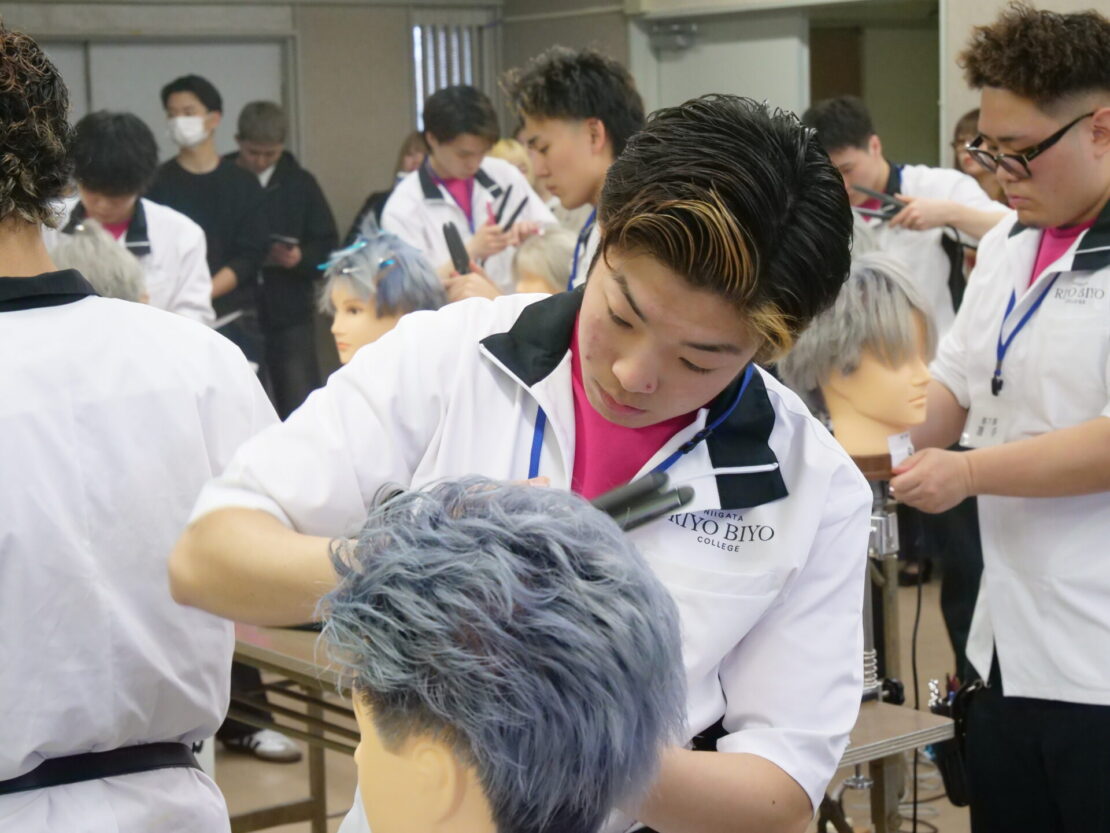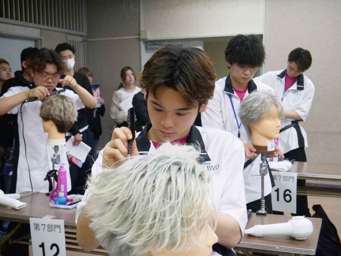 本日、第73回新潟県理容競技大会が開催され、本校理容科トータルスタイリストコース2年生が出場しました。